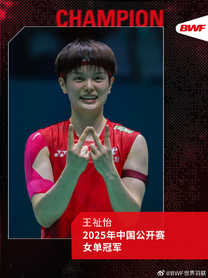 恭喜!王祉怡夺得中国羽毛球公开赛女单冠军