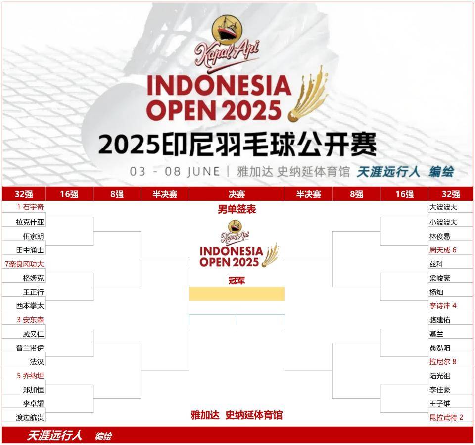 印尼公开赛最新签表国羽首日赛程混双扎堆陈雨